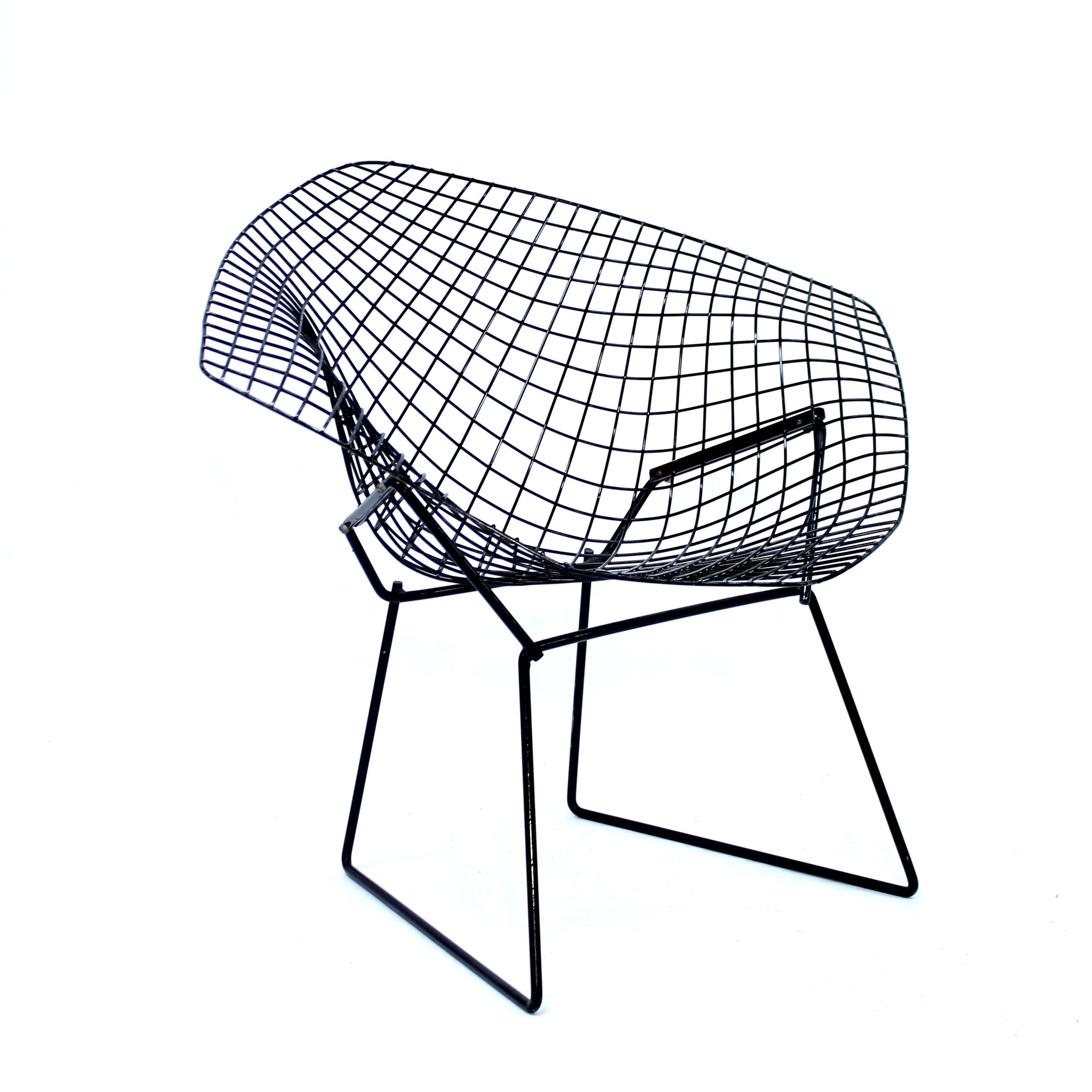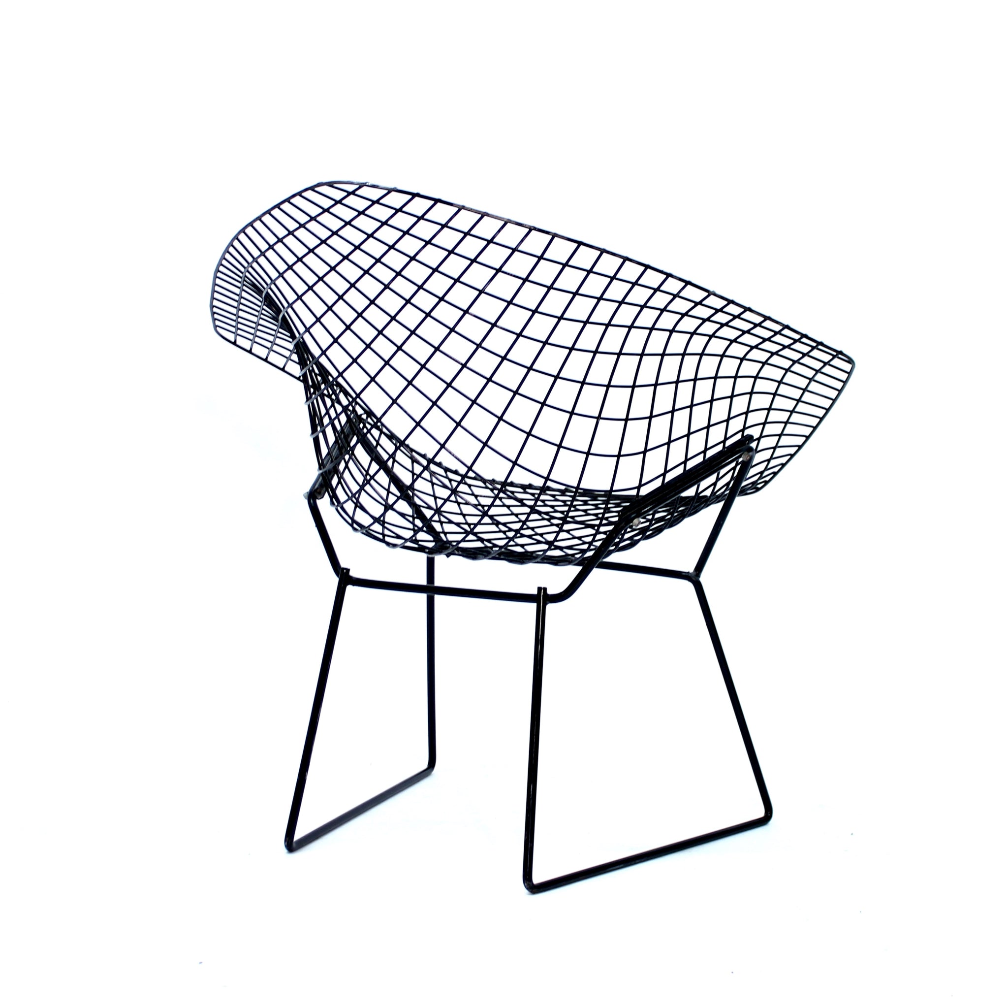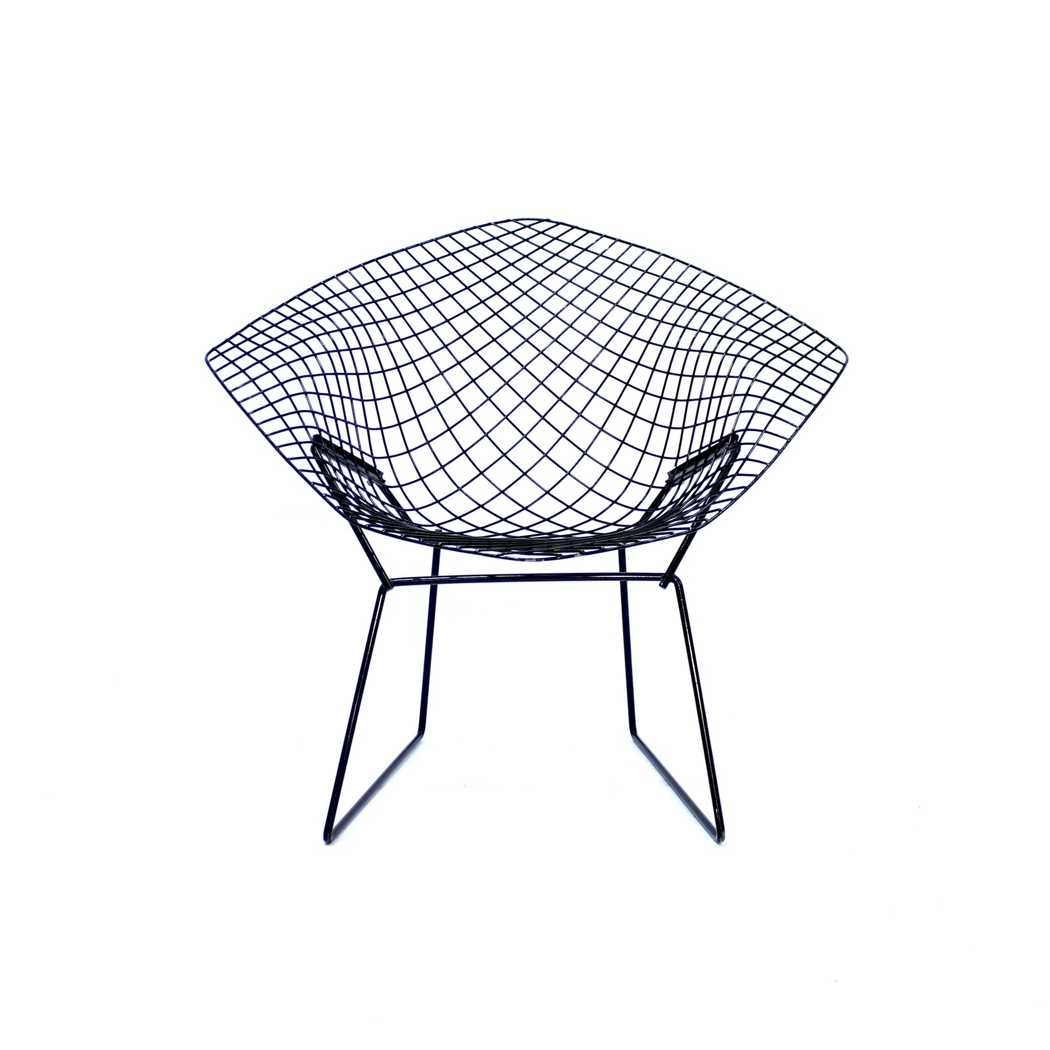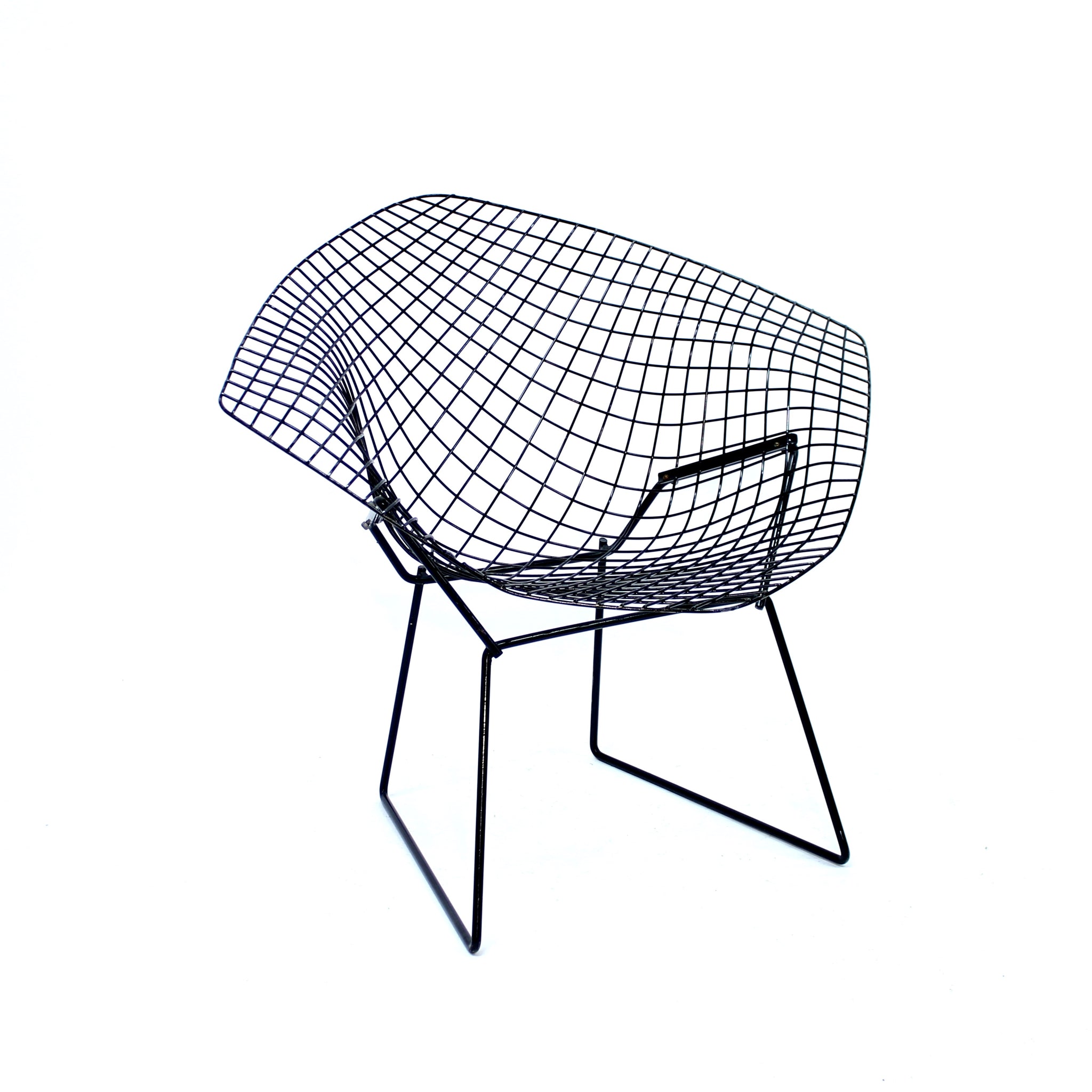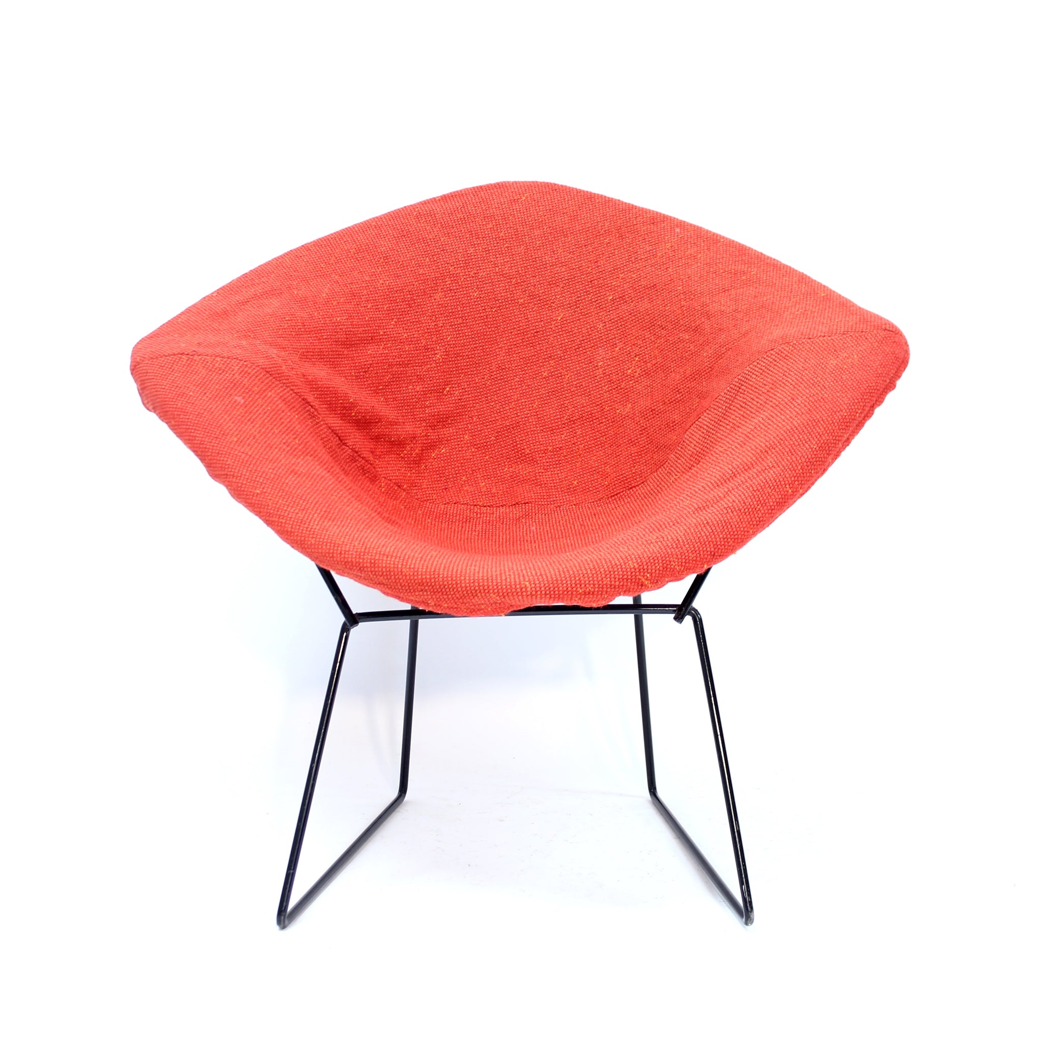 Harry Bertoia's true design classic, Diamond chair for Knoll International. This example is however manufactured in Sweden by Nordiska Kompaniet (NK) under licens from Knoll in the United States. NK produced a whole array of furniture from the Knoll catalog but this is for sure one of the most iconic. A red fabric is included that is very easy to put on or remove depending on the mood you're in for this icon. The fabric might be original but very hard to tell. It for sure has some age to it. Overall this example is in a very good vintage condition with light ware consistent with age and use.